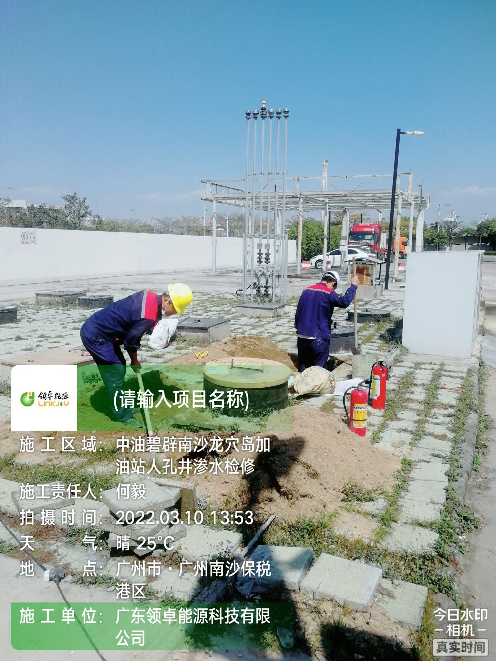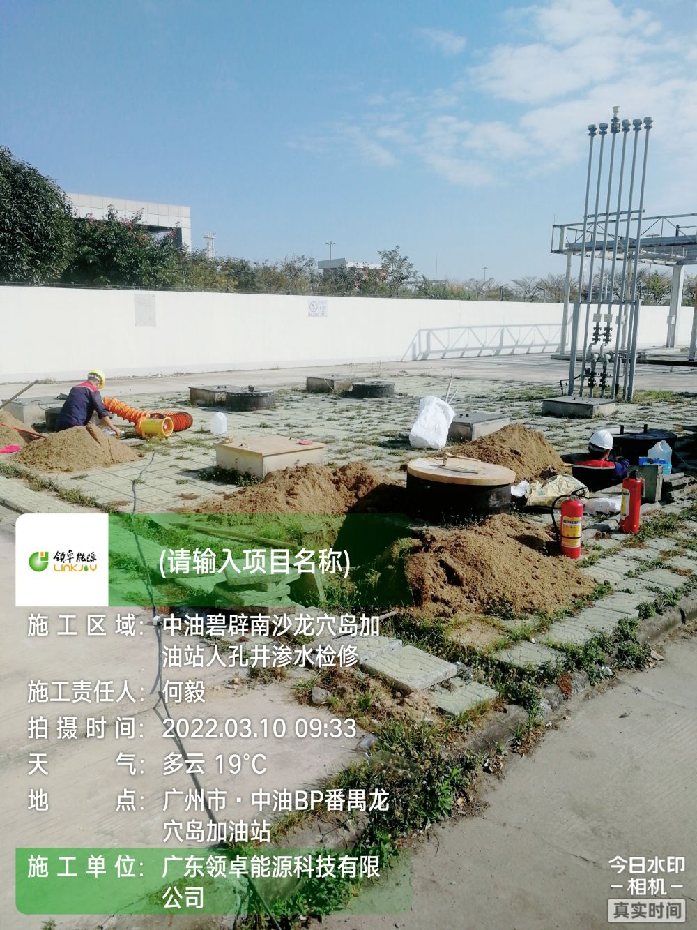 中油碧辟南沙龙穴岛加油站人孔井渗水磨练