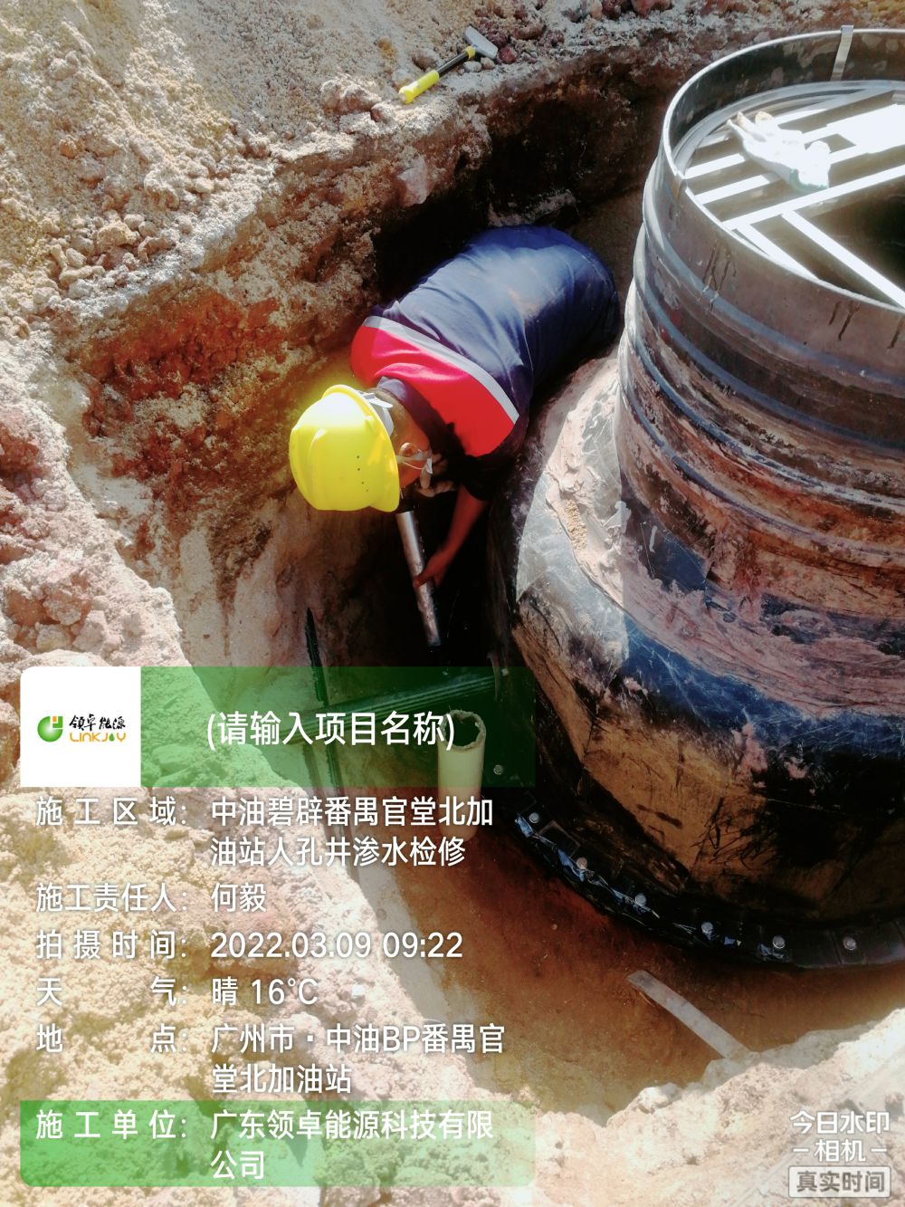 中油碧辟南沙龙穴岛加油站人孔井渗水磨练